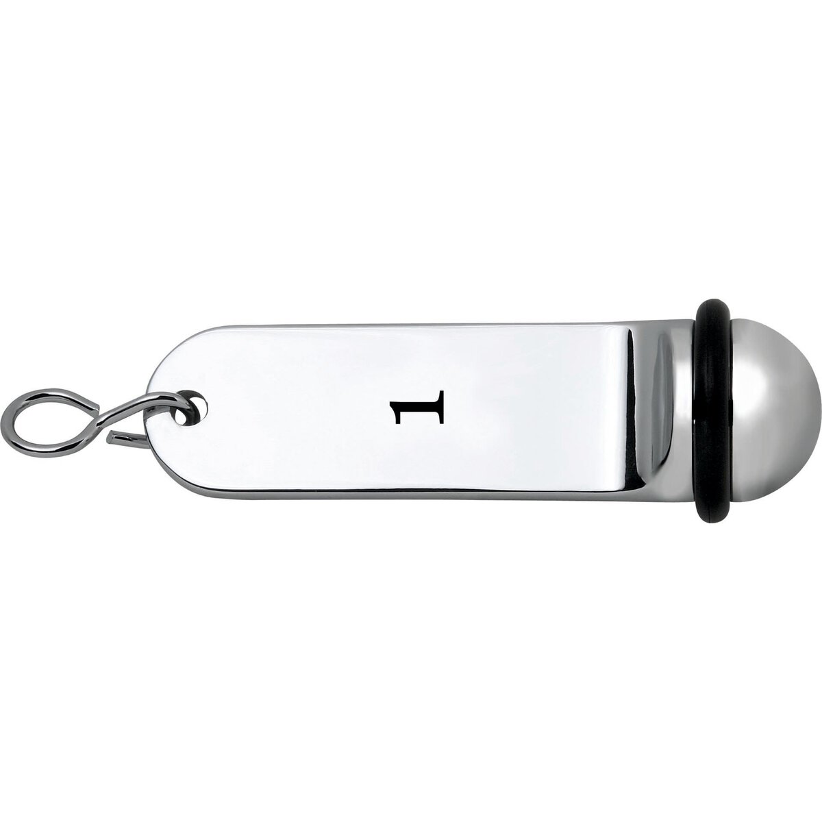 Alu, glänzend, schwarzer Gummiring, 11 cm lang. Mit Gravur fortlaufend nummeriert.