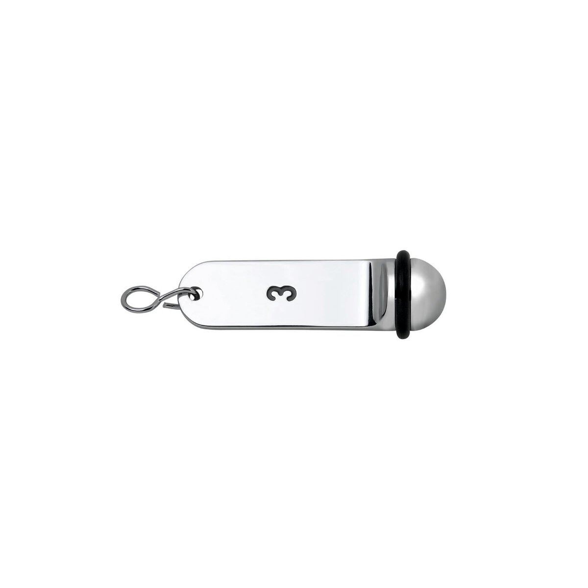 Alu, glänzend. Schwarzer Gummiring, 11 cm lang. Mit Gravur der Nummern 1 bis 30 verfügbar. Bitte geben sie die gewünschte Nummer bei Ihrer Bestellung an.