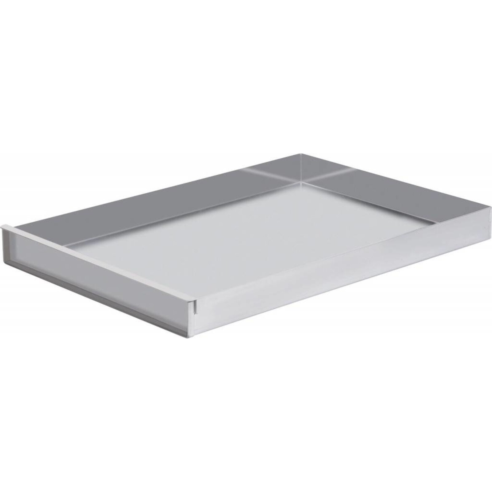 Aluminium mit Vorsatzschiene. Materialstärke Boden: 1,5 mm und Rahmen: 2 mm. Spülmaschinengeeignet.