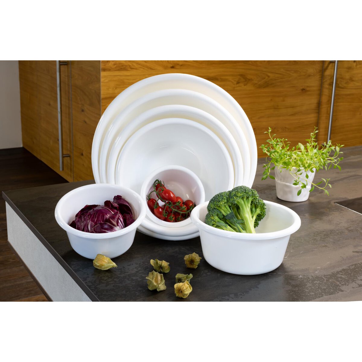 Polypropylen. Hart elastisch, unzerbrechlich, formbeständig, sterilisierbar, spülmaschinengeeignet. -20°C bis ca. +95°C.