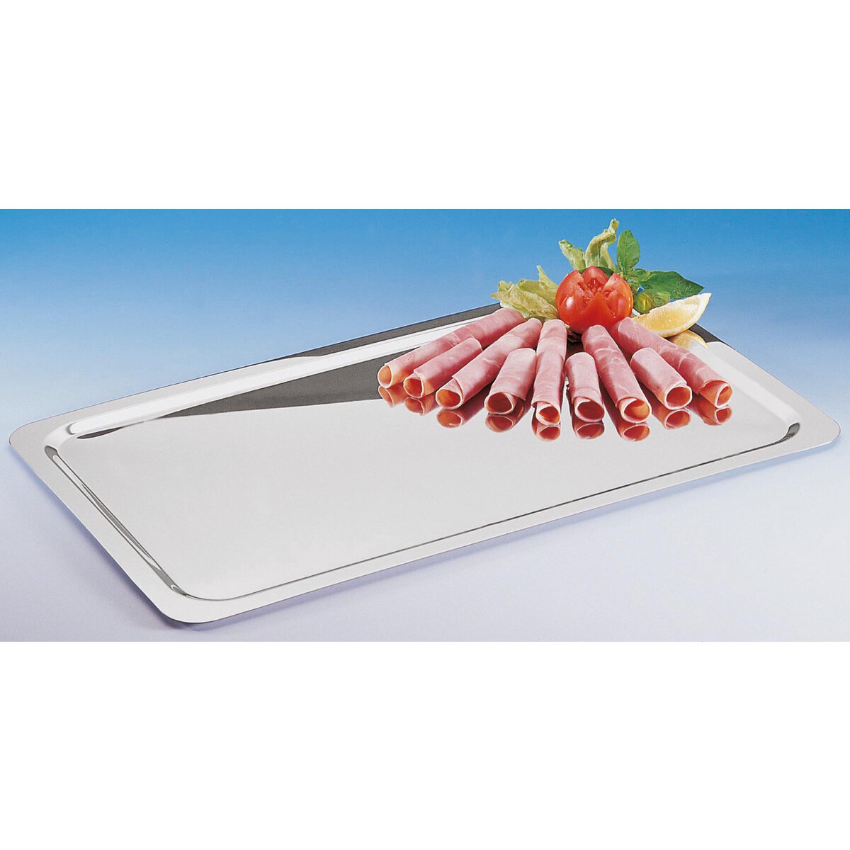 1/1 GN, Edelstahl 18/10, poliert, mit glattem, schmalem Rand. Stärke: 0,8 mm. Spülmaschinengeeignet.