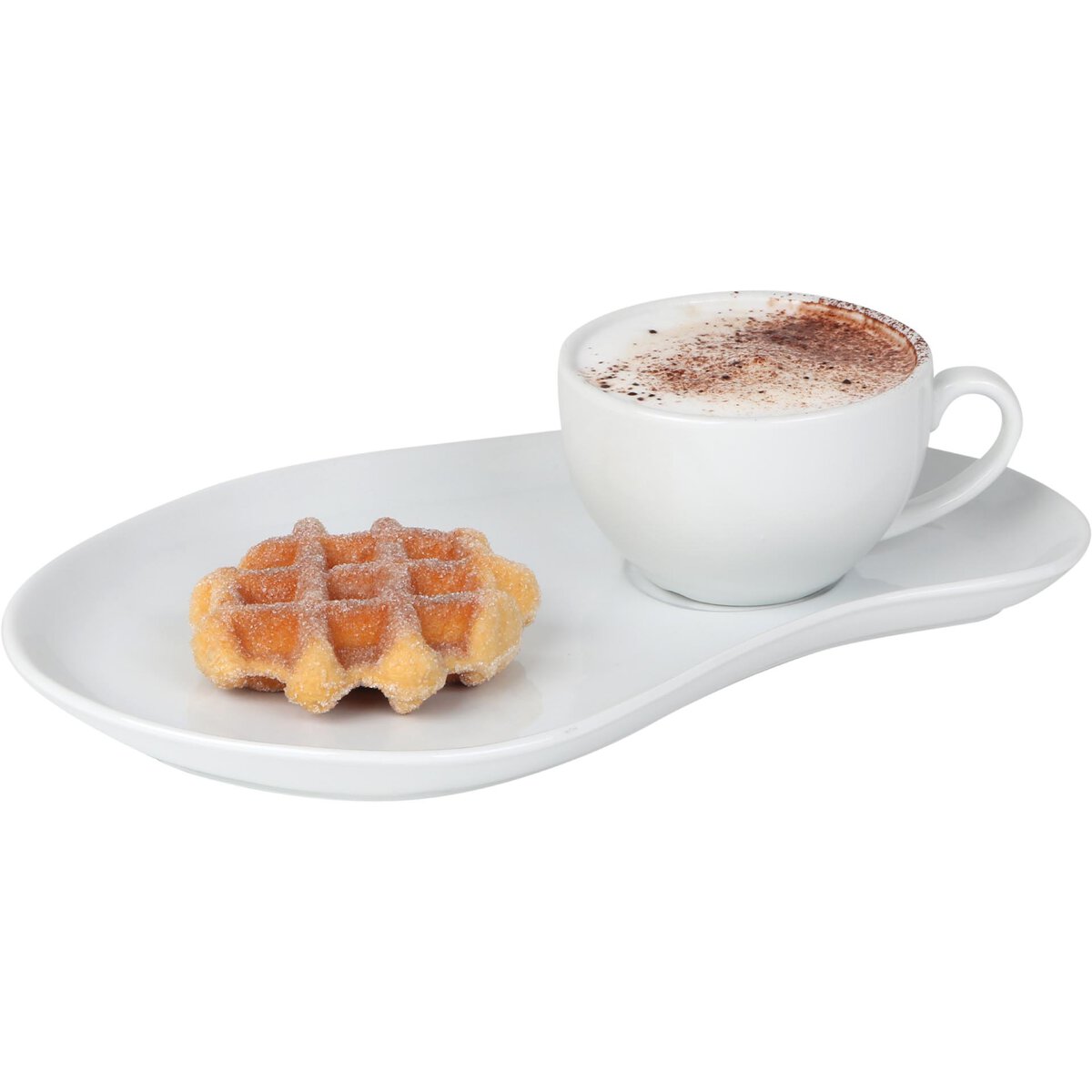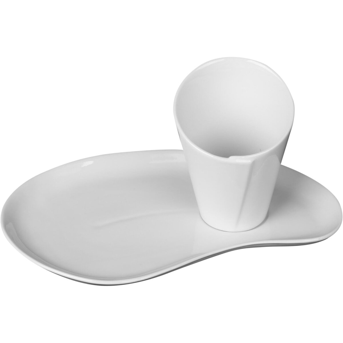 Porzellan, weiß, oval geschwungen. Spiegel Ø 6,3 cm. z. B. als Burgerplatte passend zu Frittentüte 11301, als Kaffee-/ Kuchenteller passend zu Cappuccino obere 11837 oder als Snackteller passend zu Petit Schale "Salsa" 12877. Die Kombi-Platte überzeugt durch ihre harmonische Formgebung, stilvoll Platz gespart. Temperaturbeständig bis 250°C, Boden mit Stellring.