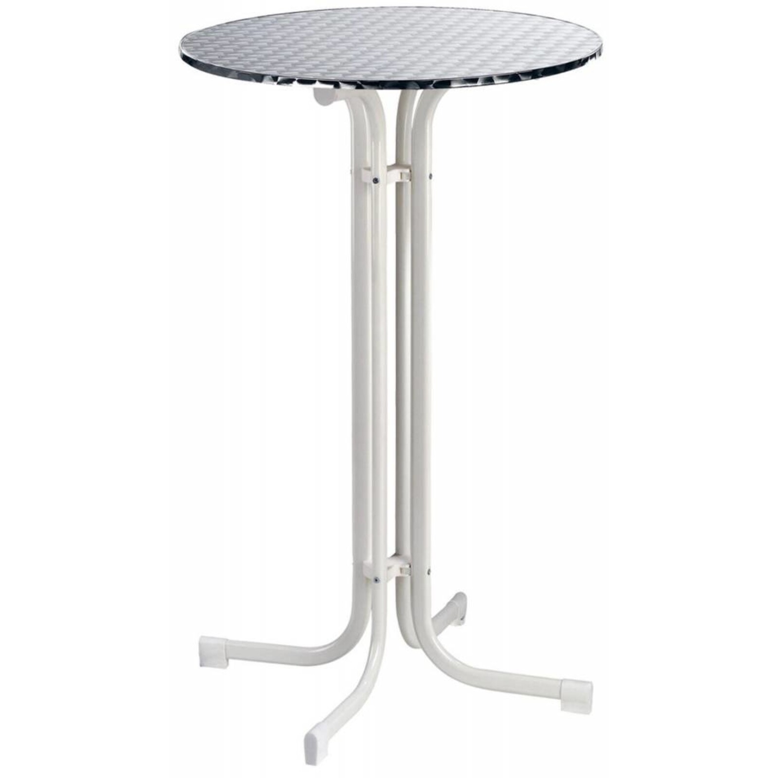 Tischplatte aus MDF mit Edelstahlbeschichtung. Gestell aus Stahlrohr Ø 28x1,5 mm, weiß. Praktisch zusammengeklappt benötigt er nur wenig Platz!