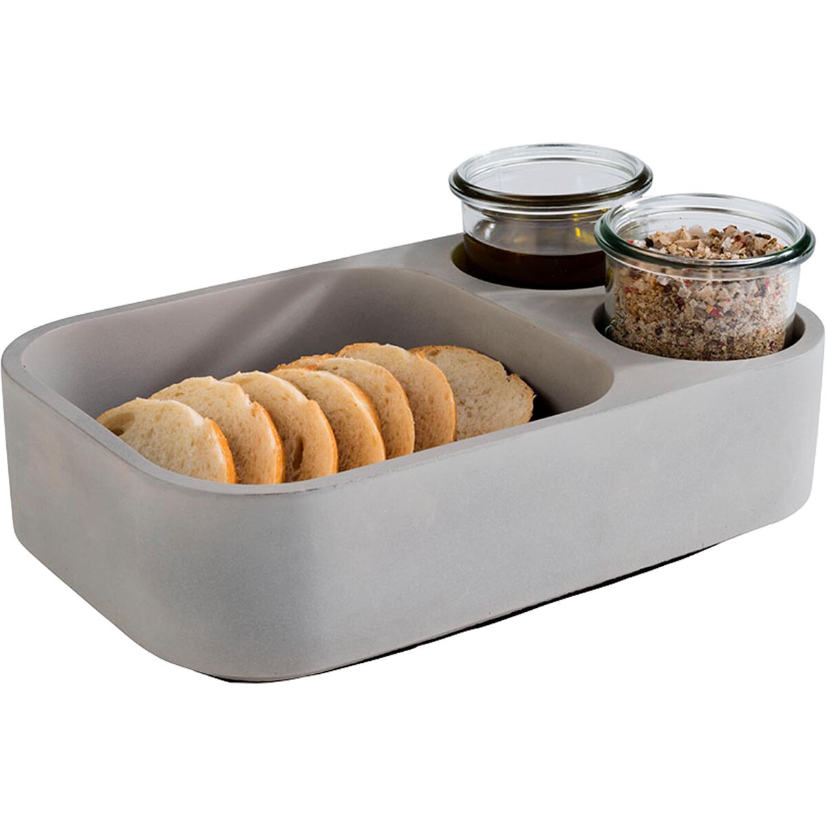 Beton mit möbelschonender Unterseite. 2 Löcher mit Ø je 6,5 cm, 1 Fach 14,0x14,5 cm.