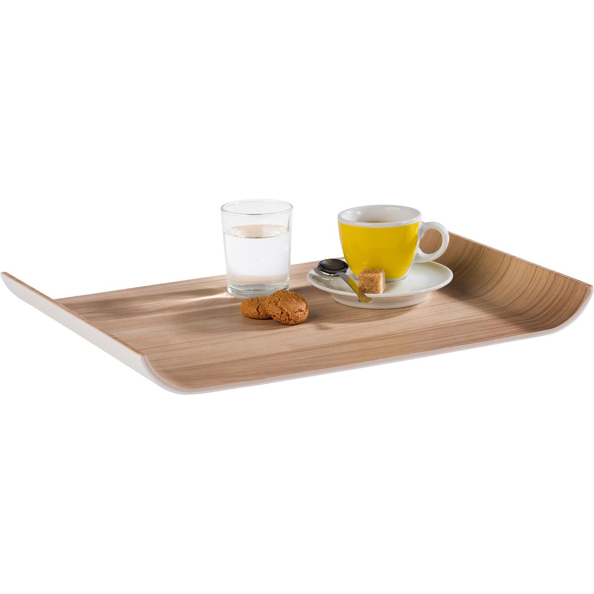 Melamin. Matte Oberflächen in Holzoptik innen und weiß außen. Stapelbar und spülmaschinengeeignet. Nicht geeignet für Backofen oder Mikrowelle und nicht direkter Hitze auszusetzen!