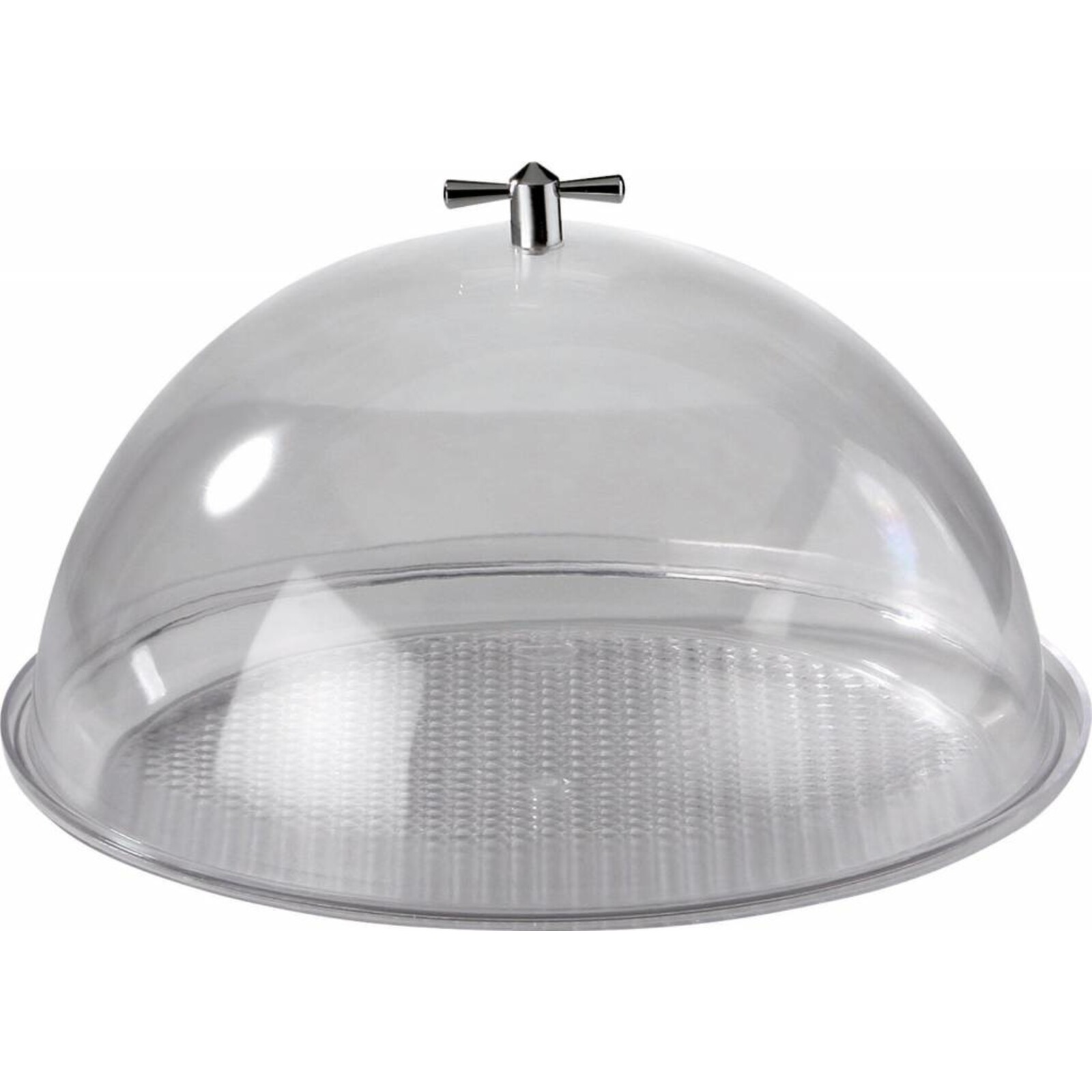 Rundes Acryl-Tablett, mit Haube zum Abnehmen. Verchromter Griff.