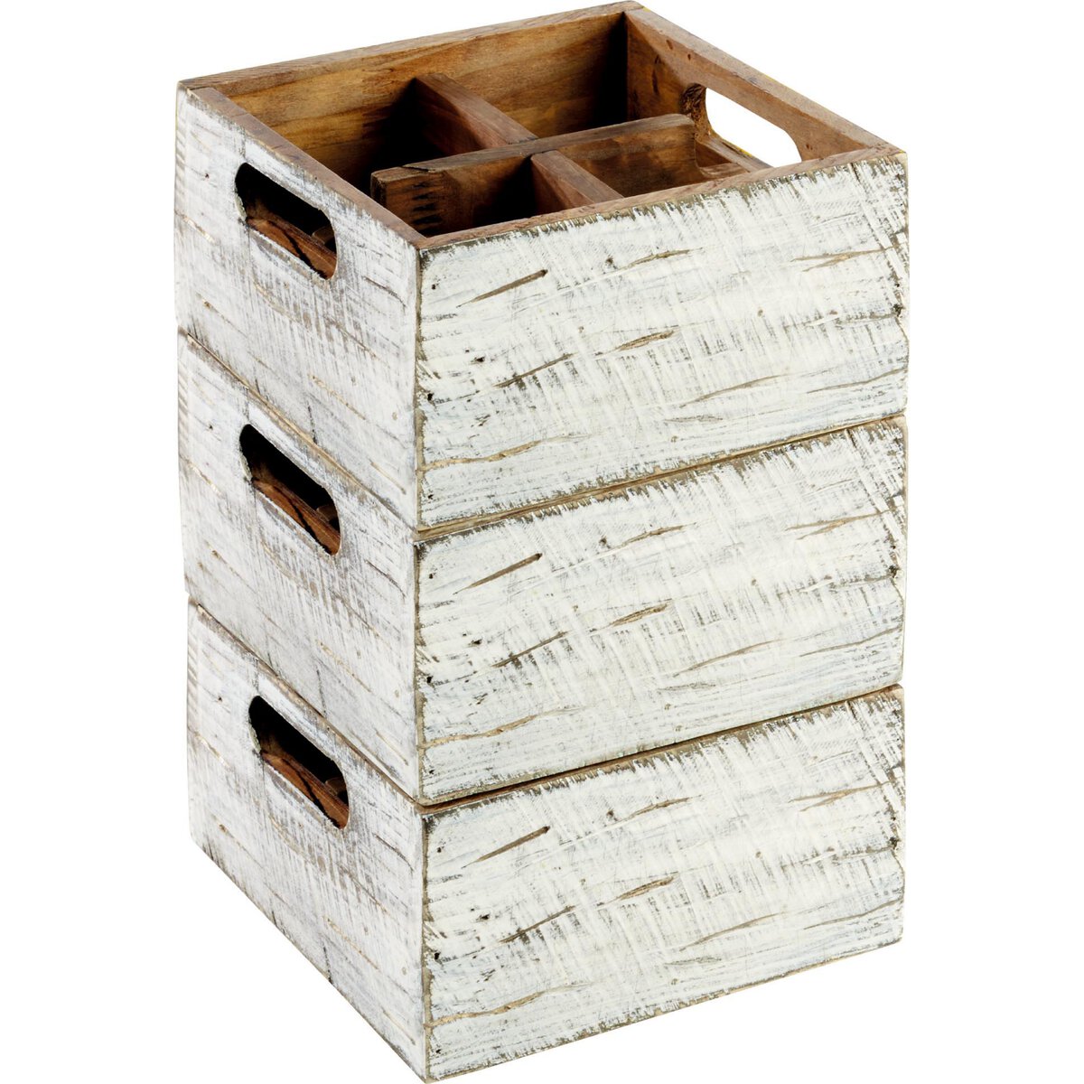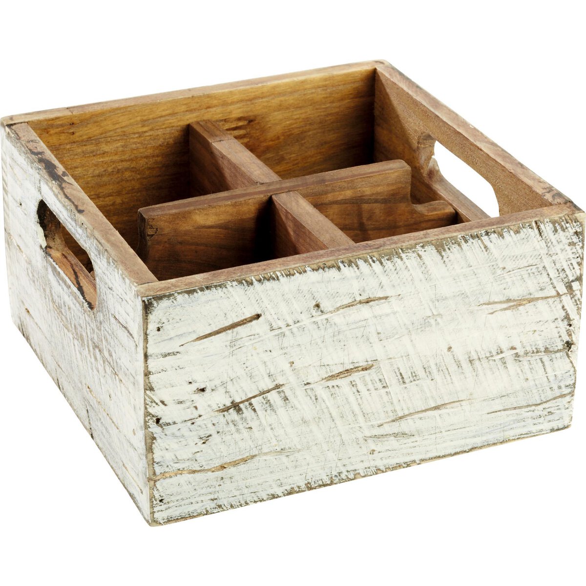 Pinienholz, weiß. Herausnehmbarer Trenner. Stapelbar. Nicht lebensmittelecht. Geeignet für z.B. Besteck, Servietten, Salz- und Pfeffermühlen, Soßenflaschen, Essig und Öl, etc.
