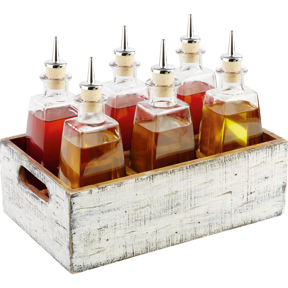 Pinienholz, weiß. Herausnehmbarer Trenner. Stapelbar. Nicht lebensmittelecht. Geeignet für z.B. Besteck, Servietten, Salz- und Pfeffermühlen, Soßenflaschen, Essig und Öl, etc.