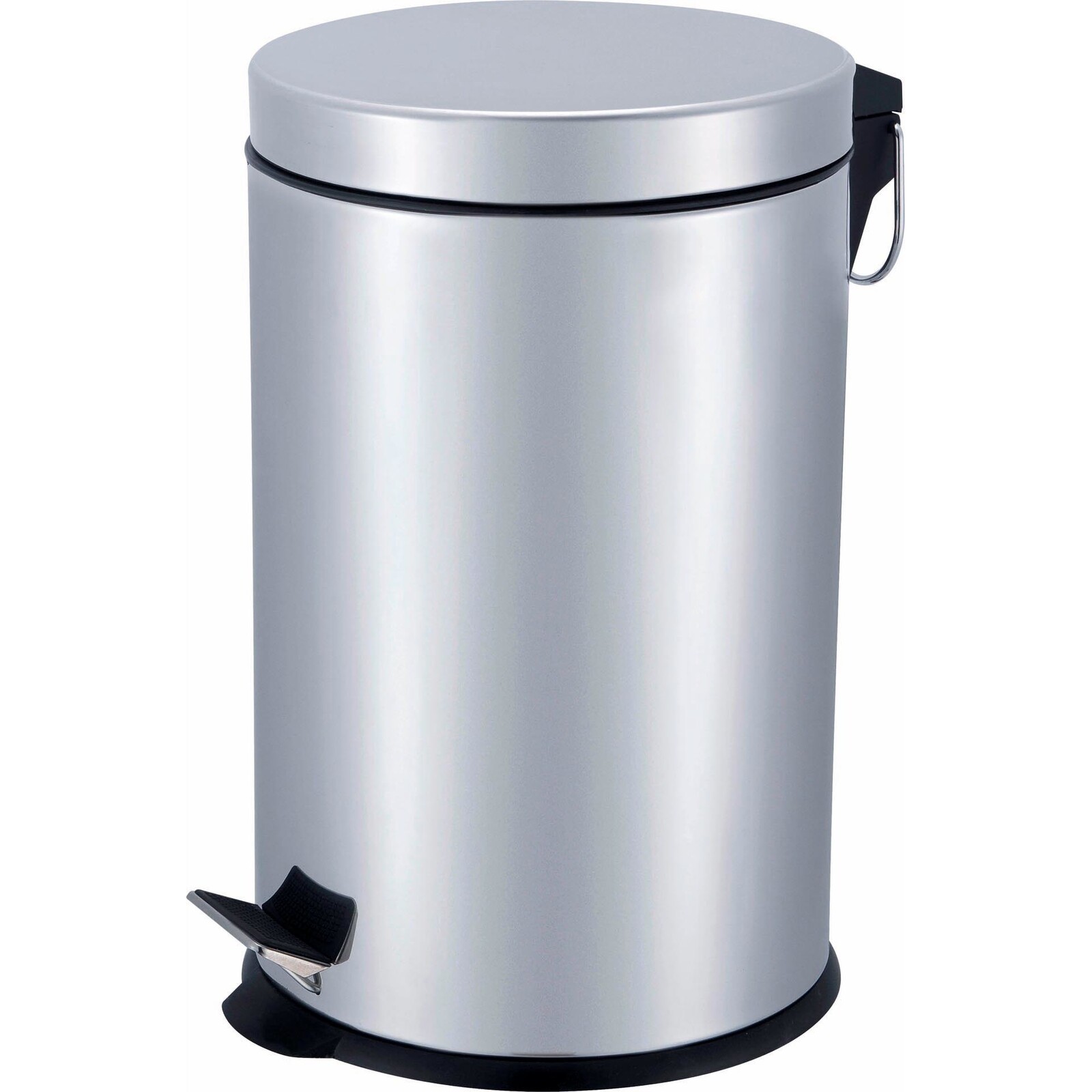 Edelstahl poliert. Mit Fußpedal. Mit Kunststoff-Bodenring. Herausnehmbarer Kunsstoff-Inneneimer mit Henkel.