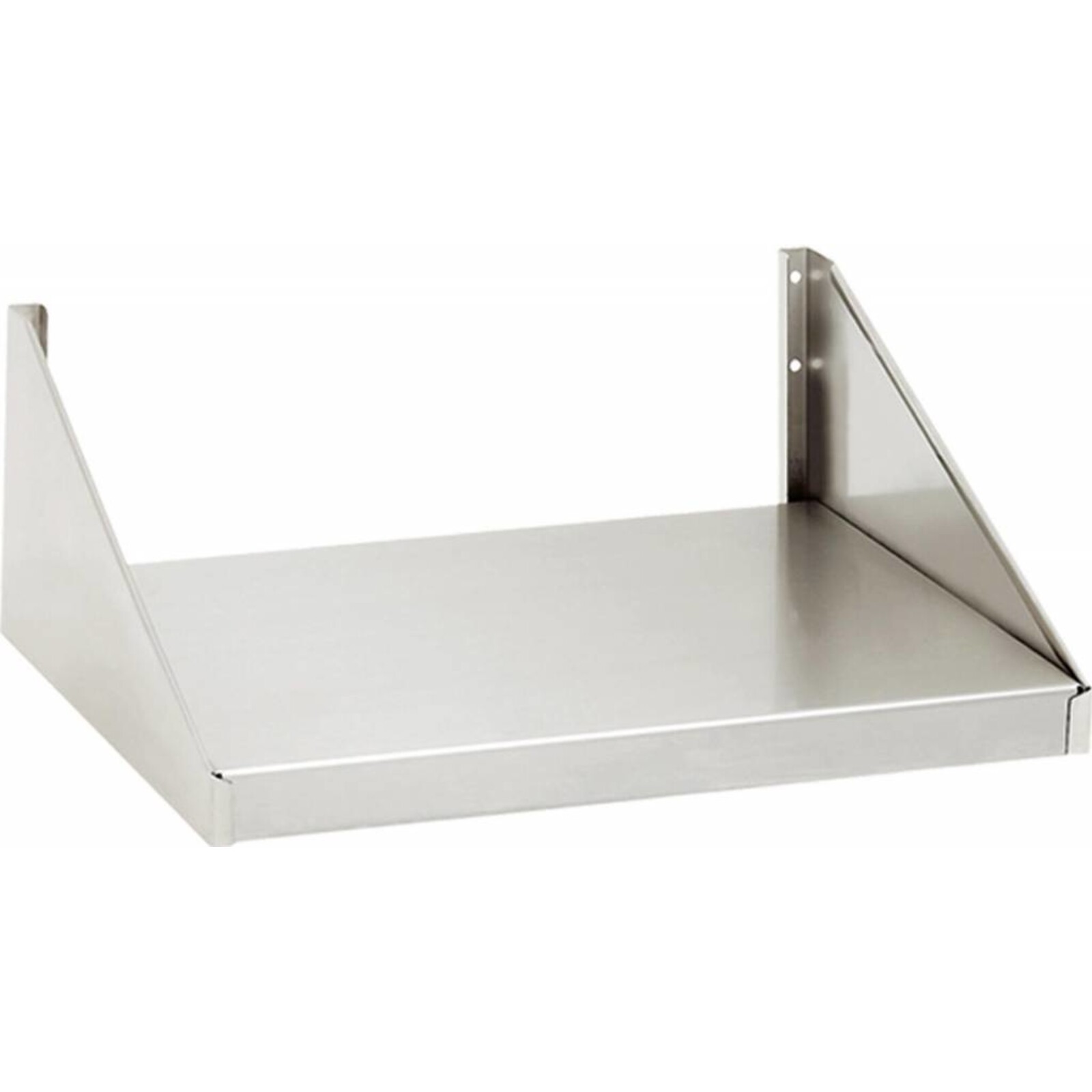 Edelstahl 18/10, extra stabile Ausführung - Hinten 20 mm Wandabstand - Tragkraft bis 20 kg. Ideal für Mikrowellen oder Salamander. Abgekantet. Gewicht: 3,5 kg.