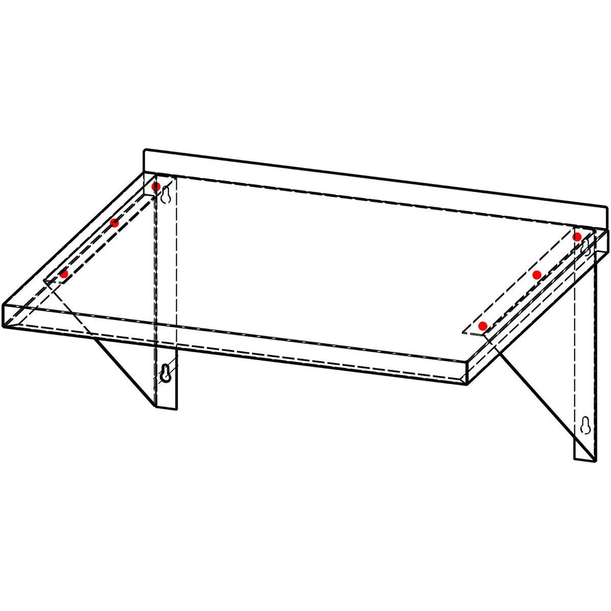 Edelstahl 18/10. Winkelkonsole mit Lochbohrungen für Wandmontage, hinten aufgekantet. Tragkraft bis ca. 45 kg.
