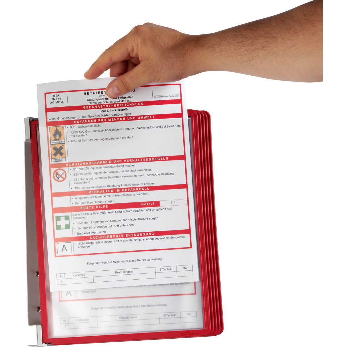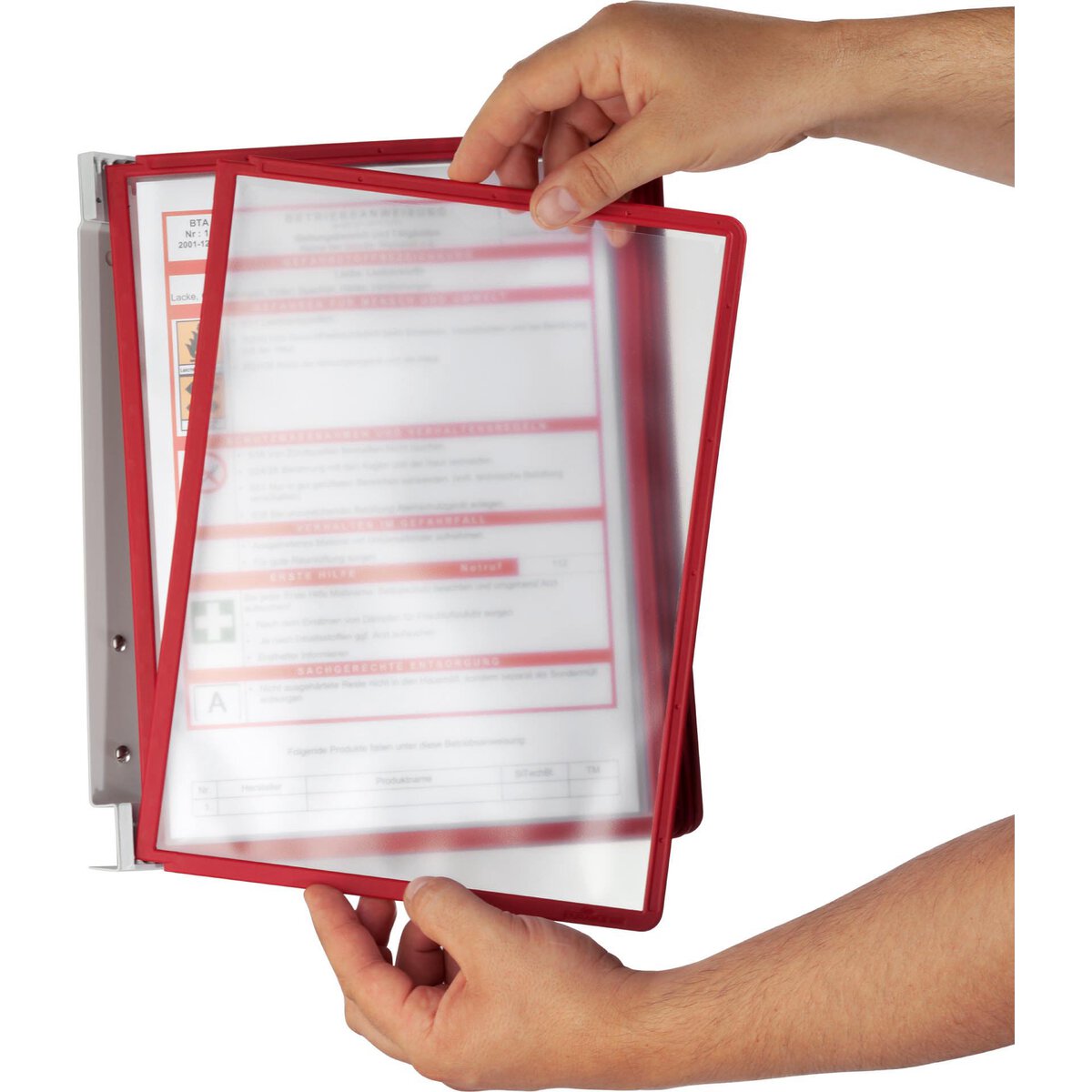 Wandhalter aus Metall mit 5 Sherpa Sichttafeln im Format DIN A4, rot, inkl. Schrauben und Dübel.