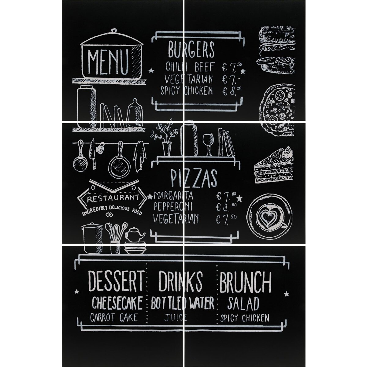 Rahmenlose Tafeln inkl. doppelseitigem Klebeband auf der Rückseite. Vielseitig einsetzbar - individuell aufhängbar. Tafeln sind beschriftbar mit Kreidemarkern aus unserem Katalog. Im 6er Pack.