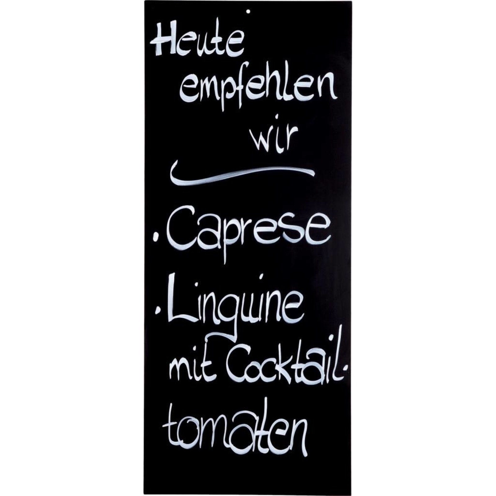 Melaminvollkernplatte. Beidseitig schwarz und beschriftbar. Leicht abwaschbar. Wetterfest. Inkl. Loch zum Aufhängen.