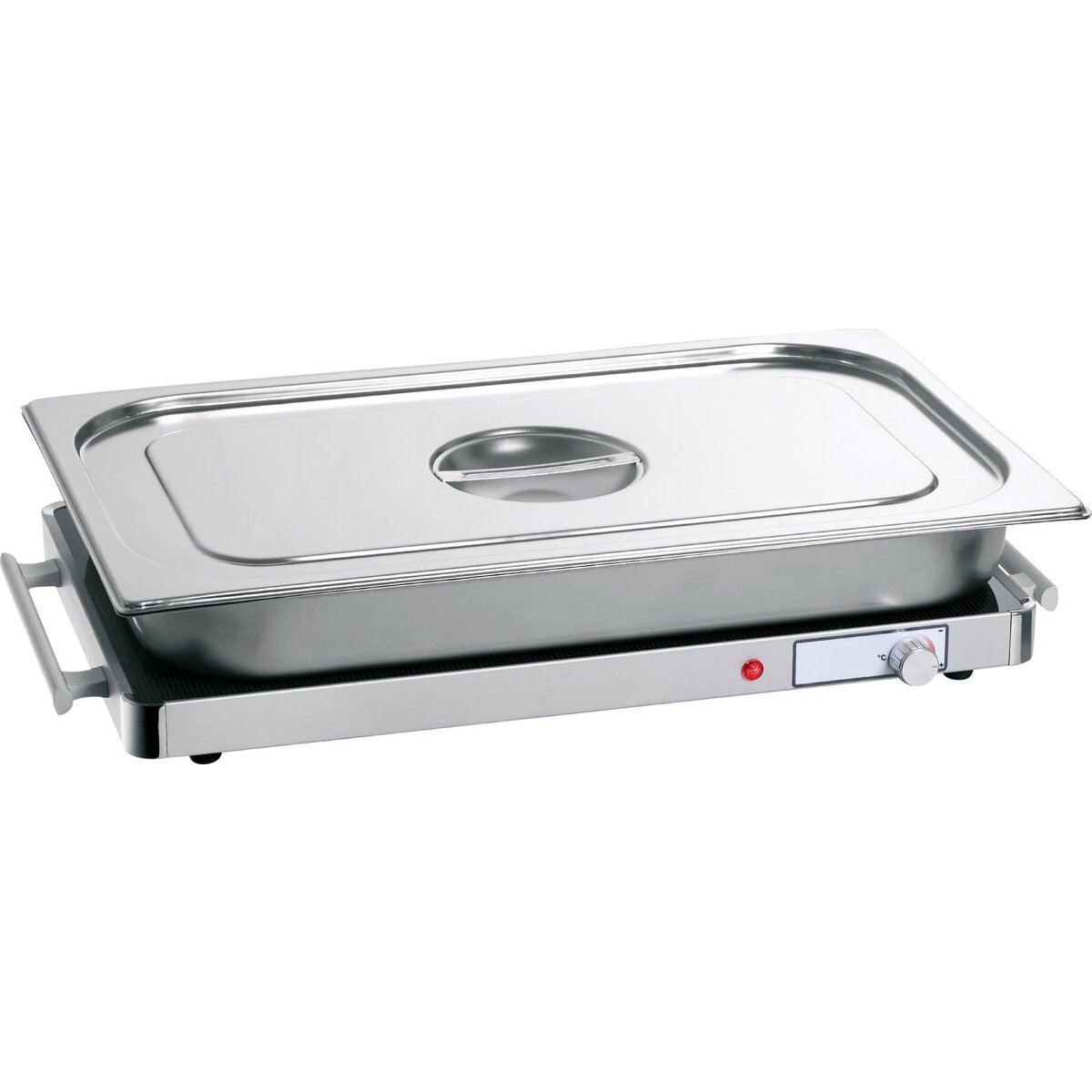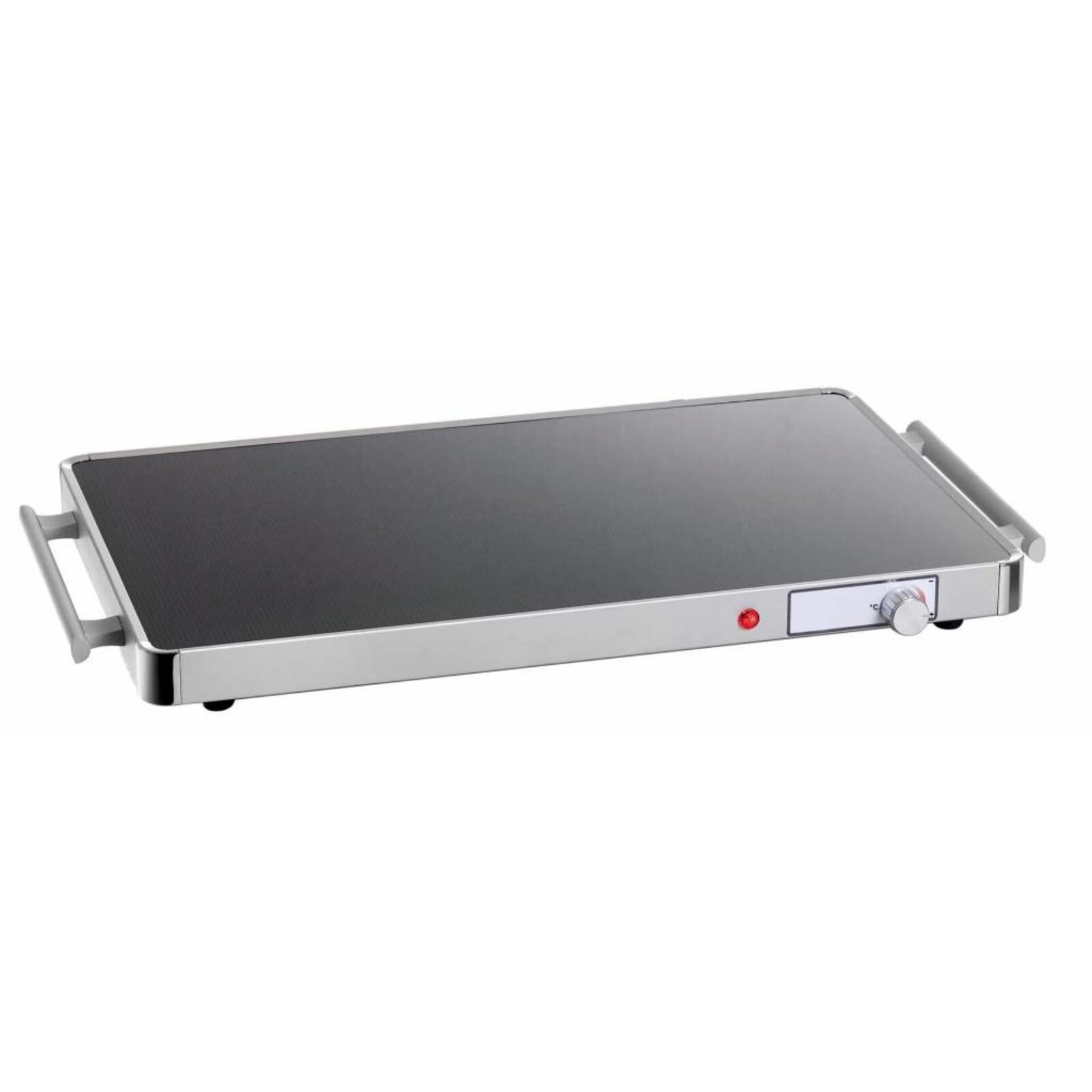 Elektro, für 1/1 GN und 2x 1/1 GN. Gehäuse aus Aluminium, Oberfläche aus Glas. Mit Ein-/Aus-Schalter, Kontrolllampe und stufenloser Temperaturregelung von 30°C bis 95°C. Oberflächentemperatur max. 95°C. Einfache Reinigung. Mit Eurostecker-Anschluss!