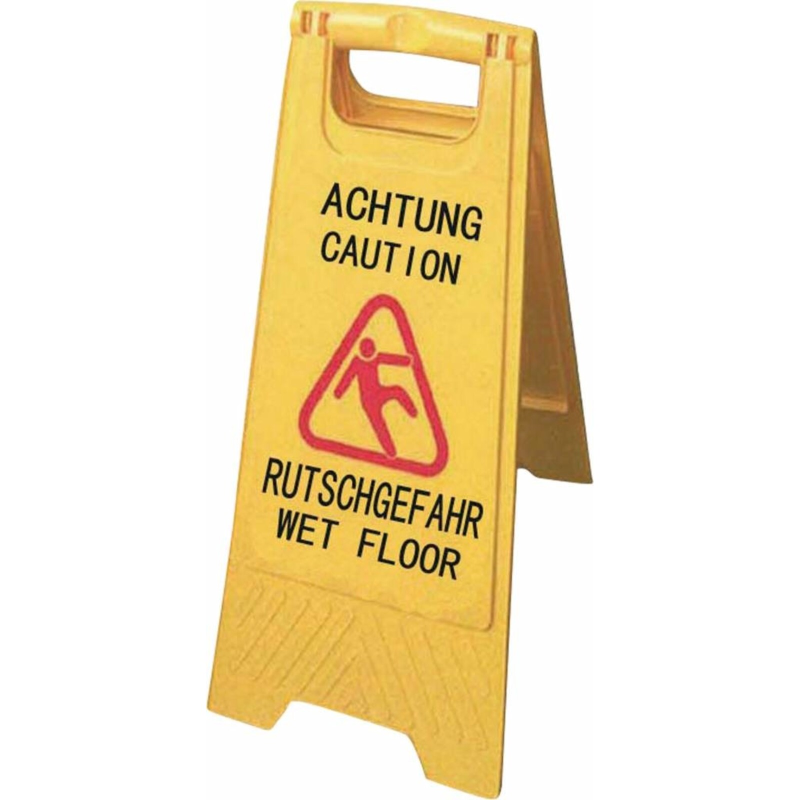 PP. Gelb. Text "Achtung Rutschgefahr" und "Caution Wet Floor" beidseitig bedruckt. Zusammenklappbar.