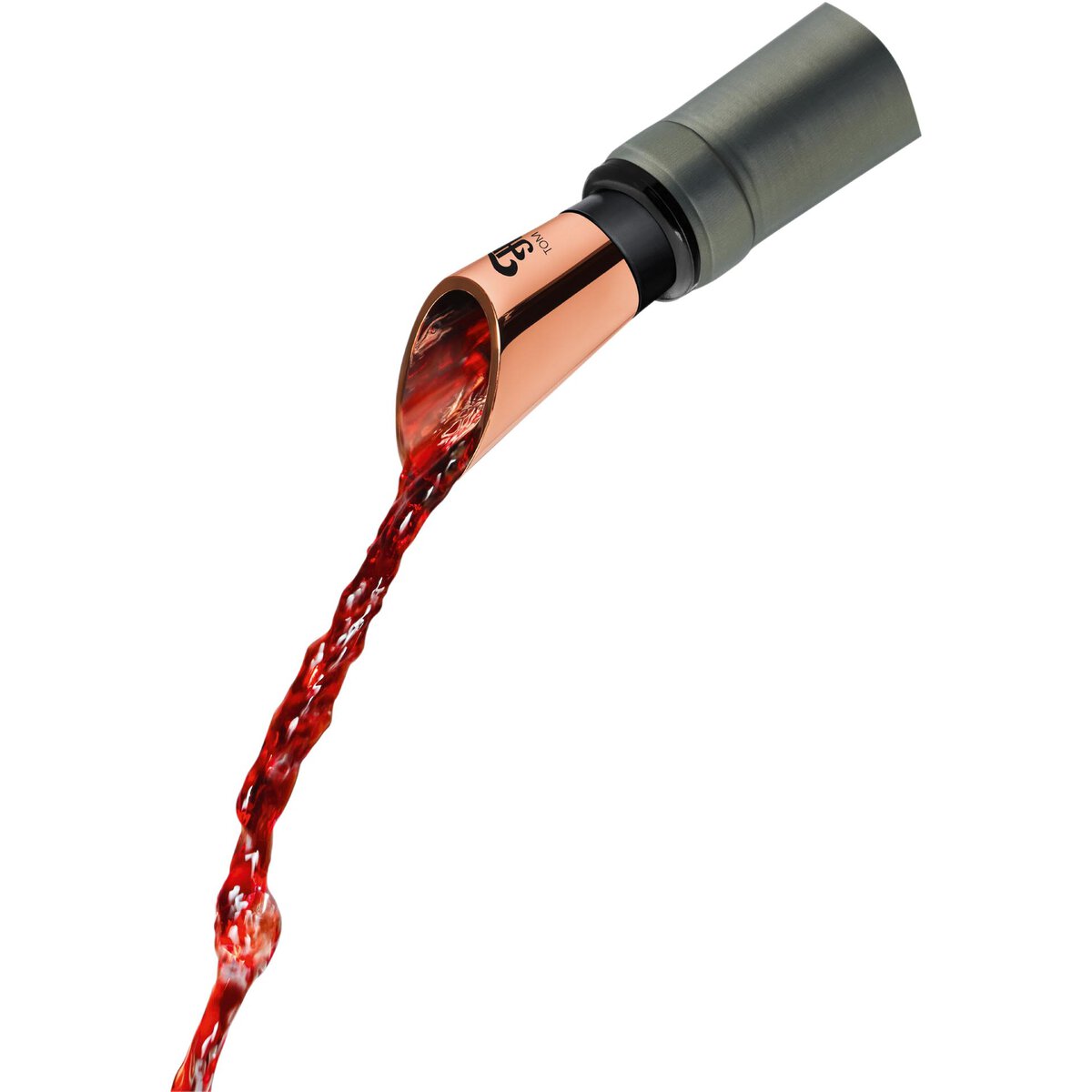Weinausgießer aus robustem Edelstahl (304). Tropfenfreier Ausschank durch harte Abrisskante, flexibler Gummikorken passt auf jede handelsübliche Weinflasche. Höhe: 7 cm, Ø oben 3 cm, Ø unten 1,5 cm. Nicht spülmaschinengeeignet!