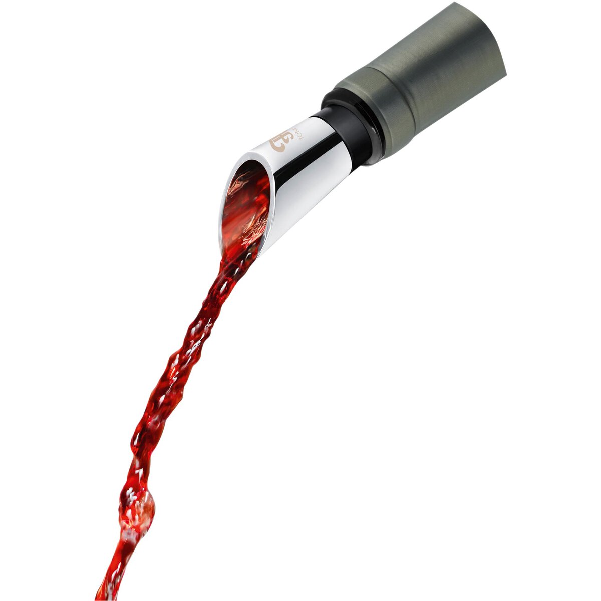 Weinausgießer aus robustem Edelstahl (304). Tropfenfreier Ausschank durch harte Abrisskante, flexibler Gummikorken passt auf jede handelsübliche Weinflasche. Höhe: 7 cm, Ø oben 3 cm, Ø unten 1,5 cm. Nicht spülmaschinengeeignet!