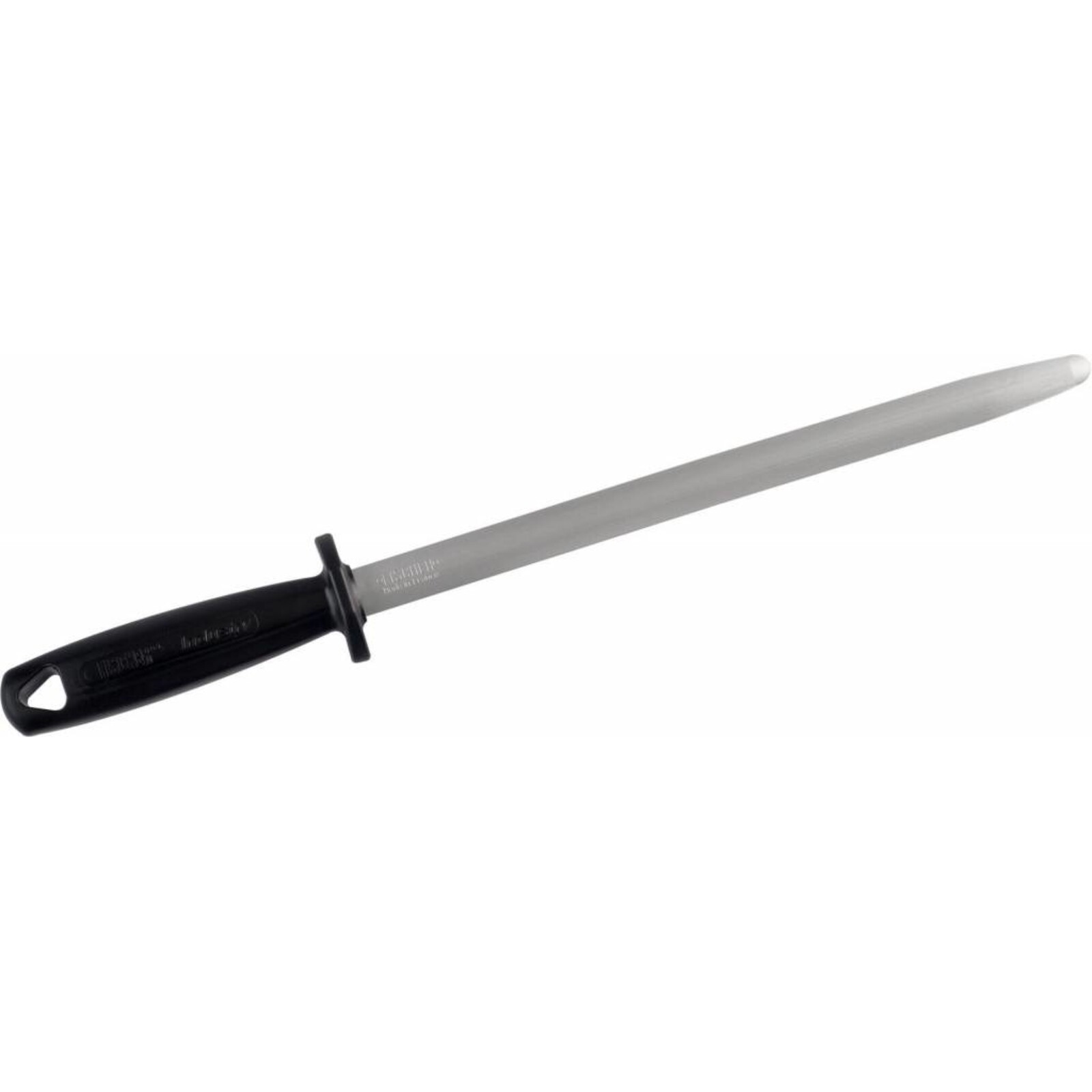 Gehärteter Stahl, rund. Hygienischer, pflegeleichter Plastikgriff. Feinschliff, runder Stahl. Besonders harte Schneidkanten dank einer Hartverchromung von 8 µm. Garantierte Oberflächenhärte von 64 HRC.